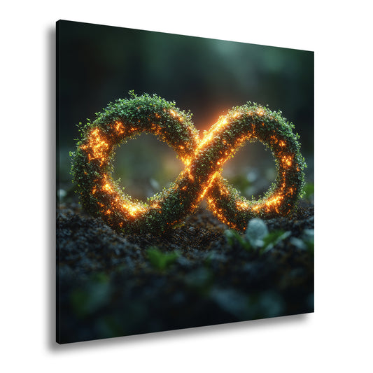 Leinwandbild Unendlichkeit XXL – Glühendes Natursymbol erwacht im Moos