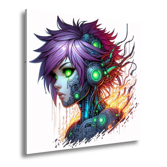 Leinwandbild Cyborg XXL – Neonleuchtend mit flammender Technoseele