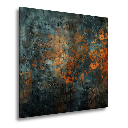 Leinwandbild Kupfer trifft Tiefe abstrakte Patina Blau Rost XXL – Abstrakte Kunst