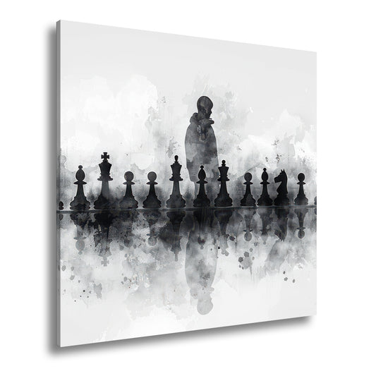 Leinwandbild Schwarz-weiße Eleganz – Schachspiel der Schatten XXL