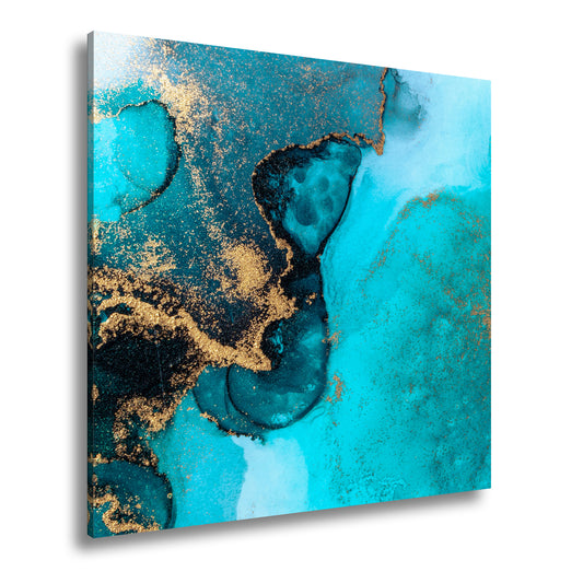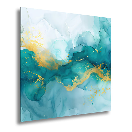 Leinwandbild Abstrakt XXL – Fließende Türkistöne mit edlem Goldschimmer