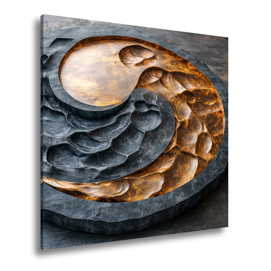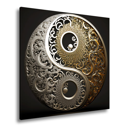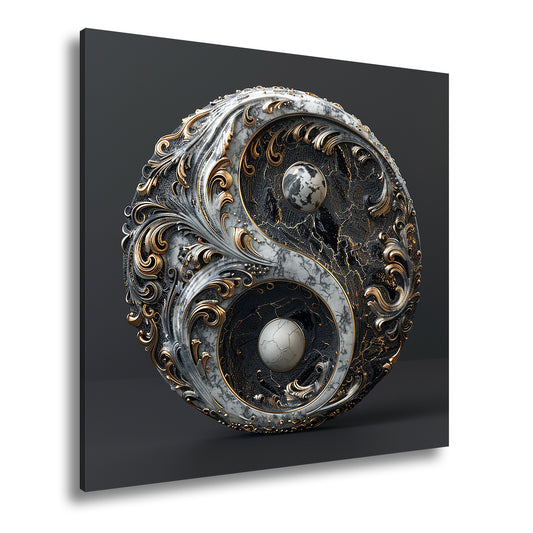 Leinwandbild Marmoriertes Yin-Yang pulsiert in dunkel-goldener Kraft