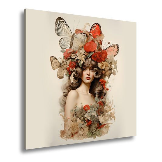 Leinwandbild Floralmuse von Schmetterlingen gekrönt