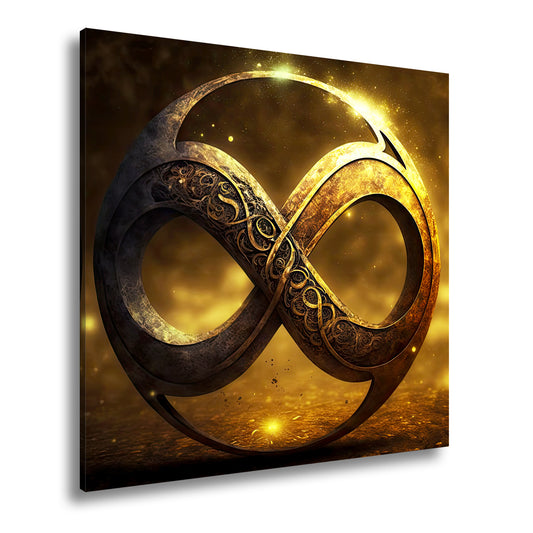 Leinwandbild Unendlichkeitssymbol XXL – Golden strahlend voller Mystik