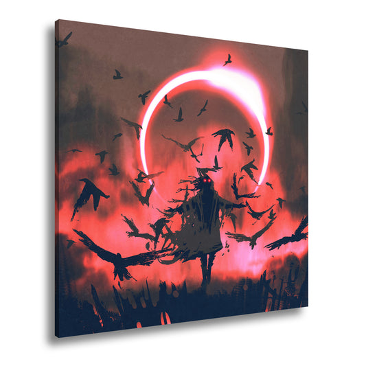 Leinwandbild Düsterer Schatten im blutroten Licht des schwarzen Himmels