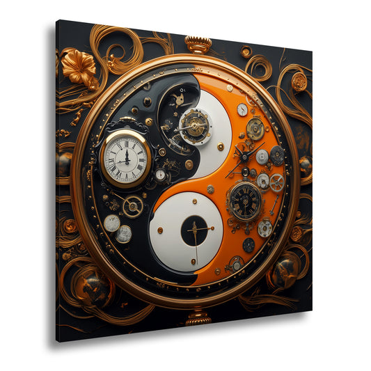 Leinwandbild Zeitkunst in Yin-Yang, Mechanik trifft goldene Eleganz