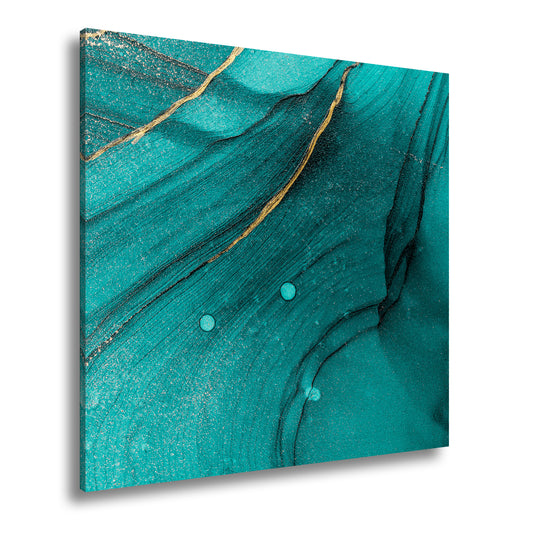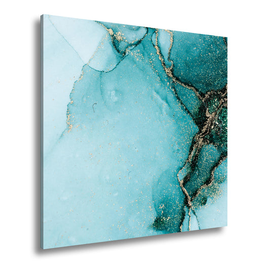 Leinwandbild Tiefes Türkis fließt in goldenen Linien wie malerische Geologie