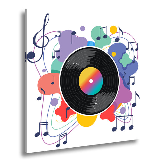 Leinwandbild Schallplatte umgeben von farbenfroher Musikenergie
