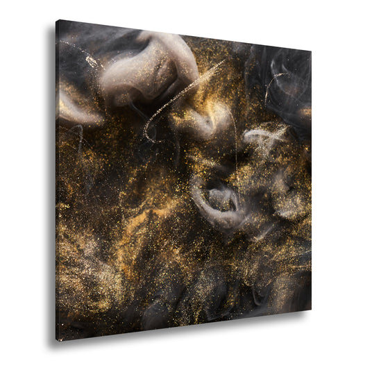 Leinwandbild Goldner Nebel wirbelt durch das Dunkel der Träume.