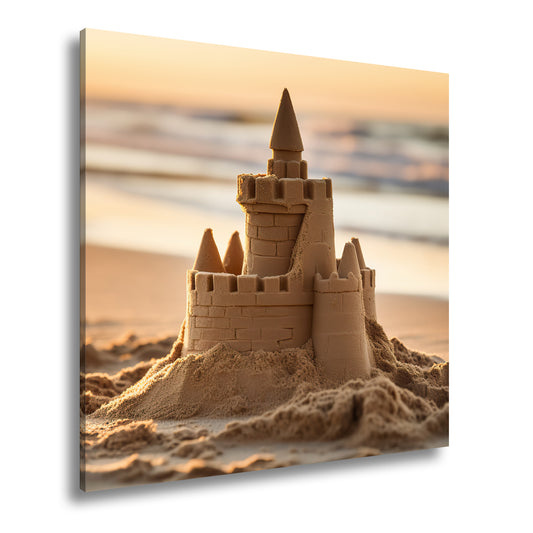 Leinwandbild Märchenschloss aus Sand glänzt im Licht der sinkenden Sonne.