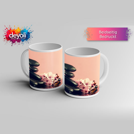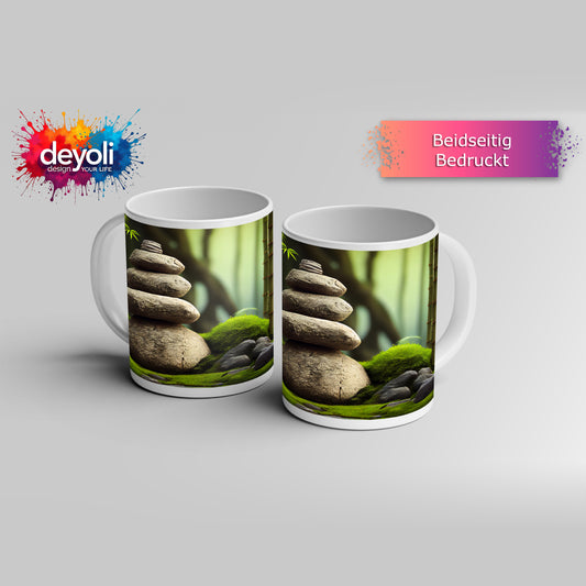 Motivtasse Zen-Magie – Steine und Bambus in perfekter Harmonie.