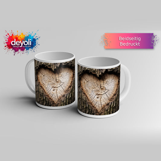 Motivtasse Herz aus Holz – verborgen im Kern des alten Baumes.