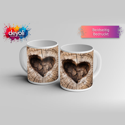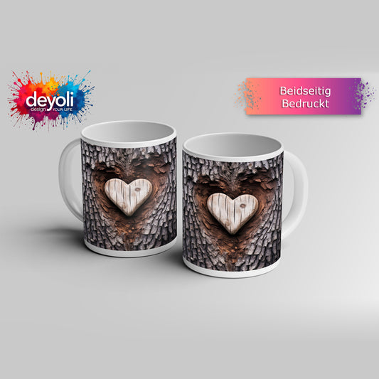 Motivtasse Handwerk der Natur – geschnitzte Liebe im Baumherz.