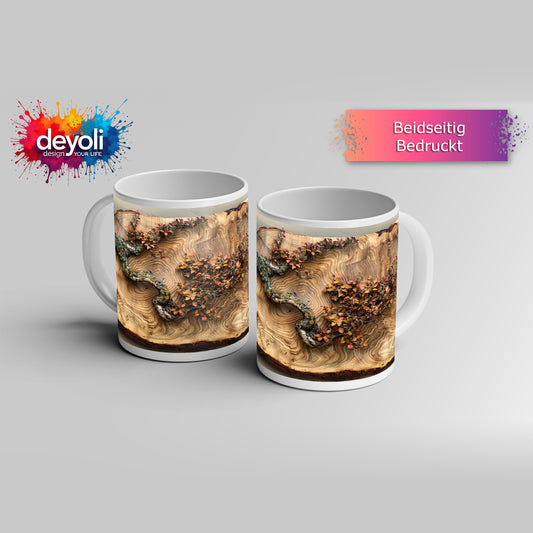 Motivtasse Kunstvoller Ast auf edlem Holz – Natur als Gemälde.