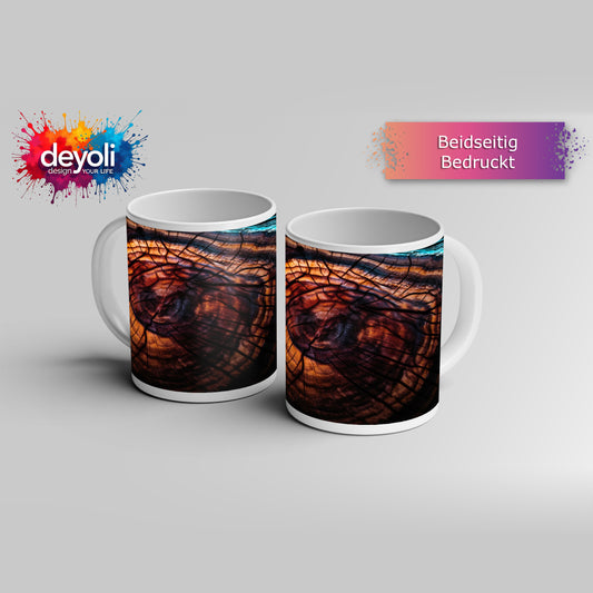Motivtasse Feurige Maserung – Natur malt in Flammenfarben.