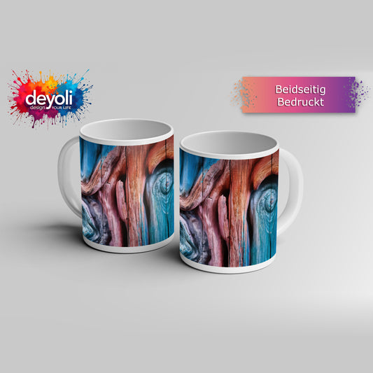 Motivtasse Farbenflut im Holz – Natur als lebendige Leinwand.