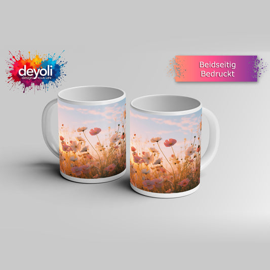 Motivtasse Leichte Blüten tanzen im sanften Abendlicht des Sommers.
