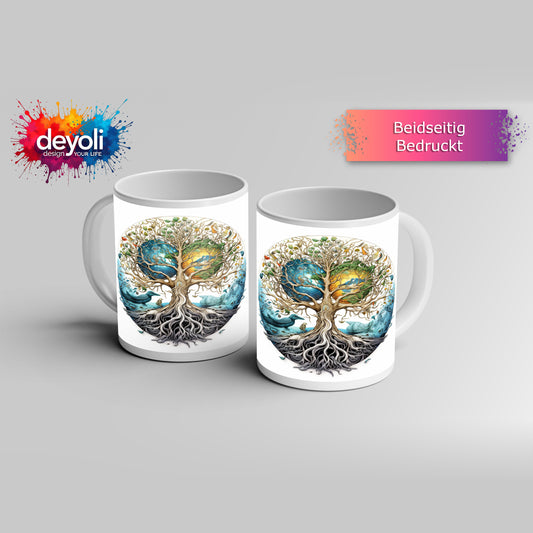 Motivtasse Kosmischer Lebensbaum, verwoben mit Himmel und Erde.