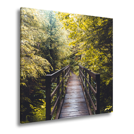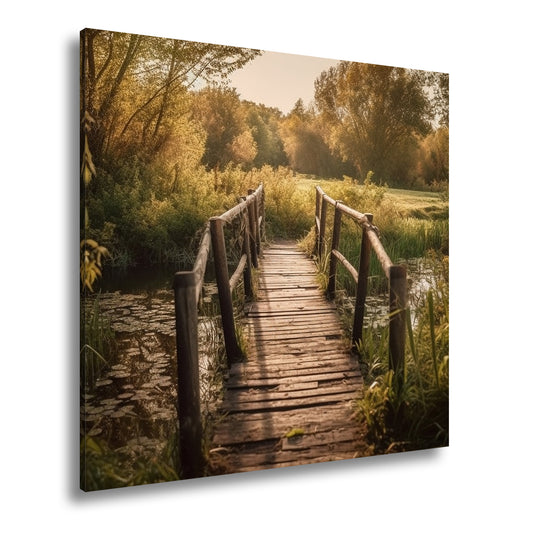 Leinwandbild Waldbrücke XXL – In goldenem Licht lädt zum Eintauchen in die Natur