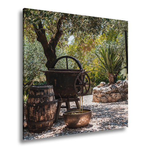 Leinwandbild Olivenhain XXL – Mediterran mit rustikaler Ölpressromantik