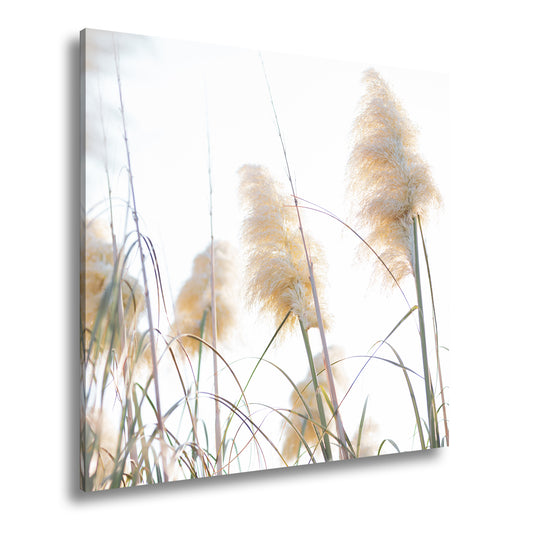Leinwandbild Zarte Gräser tanzen ruhig im blassen Morgenhimmel