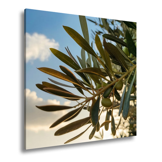 Leinwandbild Sonnendurchflutete Olivenzweige voller natürlicher Ruhe