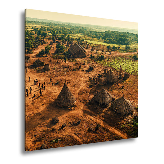 Leinwandbild Dorf: Sonnengetauchtes Dorfleben in warmen, erdigen Farben