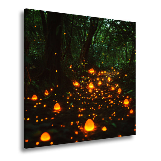 Leinwandbild Waldlichter: Magischer Pfad voller sanft glühender Lichtpunkte