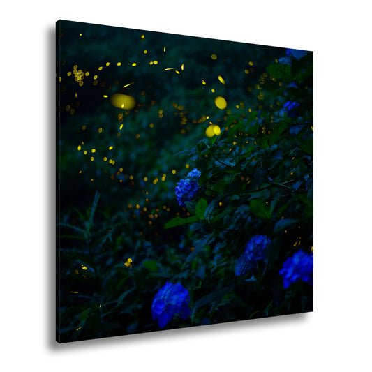 Leinwandbild Glühwürmchen tanzen über nächtlichen Blüten