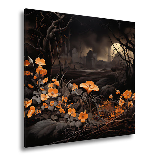 Leinwandbild Blumen XXL – Leuchtend trotzen dunkler Endzeitlandschaft