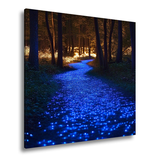 Leinwandbild Blaupfad XXL – Leuchtend führt durch nächtige Magie
