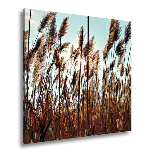 Leinwandbild Schilf XXL – Goldenes Tanzen im warmen Sonnenlicht