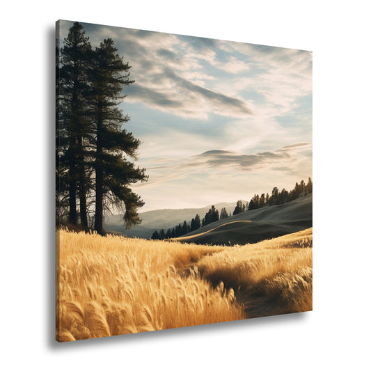 Leinwandbild Golden wogende Felder im sanften Licht des Abends