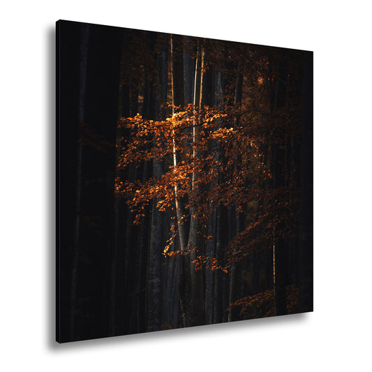 Leinwandbild Leuchtender Herbstbaum im mystischen Wald