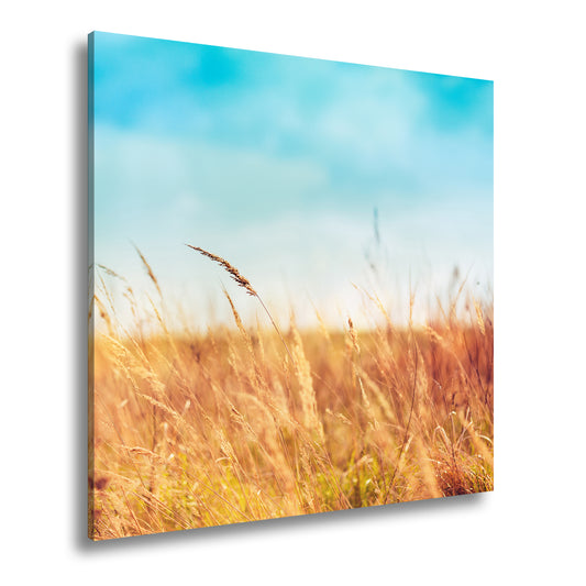 Leinwandbild Zarte Gräser tanzen im weichen, überstrahlten Sonnenlicht