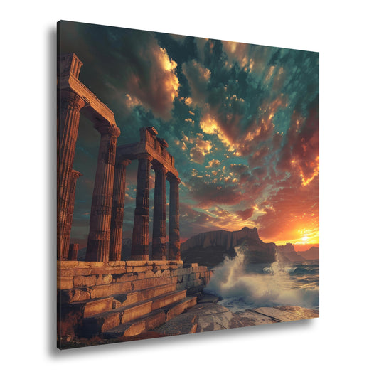 Leinwandbild Wogen treffen antike Säulen im Abendhimmel XXL – Meer Architektur