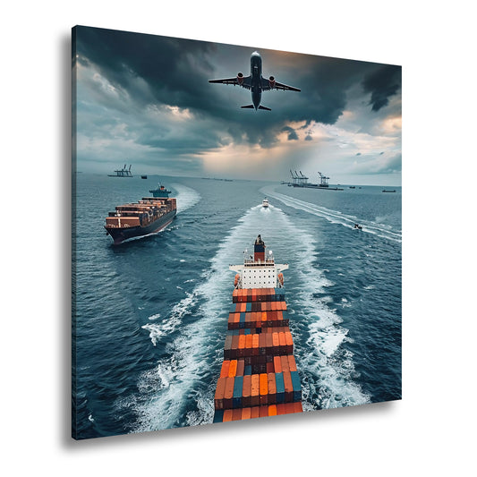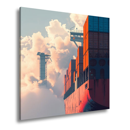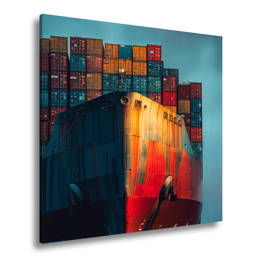 Leinwandbild Containerschiff auf stürmischen Wegen über Meer XXL – Schiff