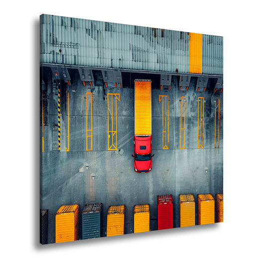 Leinwandbild LKW Transport goldene Linien industrielle Perfektion XXL – Logistik