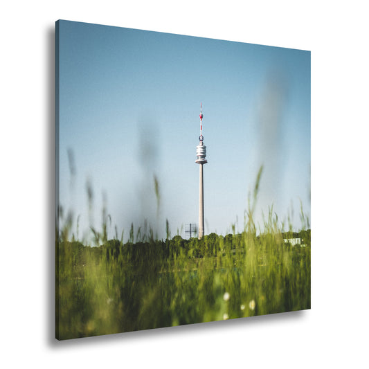 Leinwandbild Donauturm über Wiese im klaren Sommerhimmel XXL – Wien Wahrzeichen