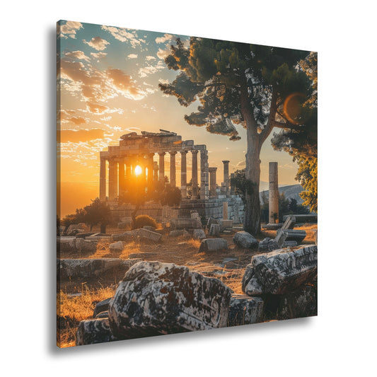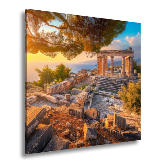 Leinwandbild Antike Ruinen über glühendem Mittelmeerhorizont XXL – Architektur