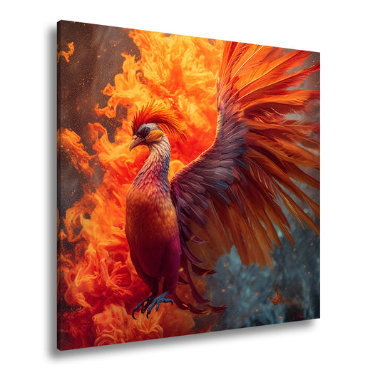 Leinwandbild Feuervogel erhebt sich aus lodernden Flammen XXL – Fantasy Phönix