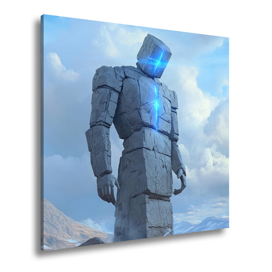 Leinwandbild Steinerner Gigant mit leuchtendem Kern eisige Einsamkeit XXL – Fantasy