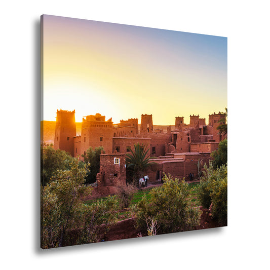Leinwandbild Lehmrote Kasbah im goldenen Sonnenlicht XXL – Architektur Marokko