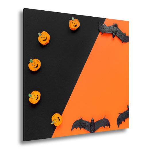 Leinwandbild Halloweenstimmung mit Kürbissen und Fledermäusen XXL – Halloween Deko
