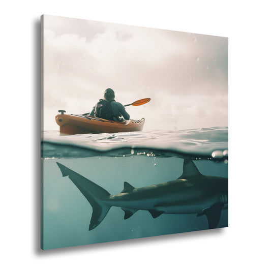 Leinwandbild Gigant der Tiefe gleitet neben mutigem Kajakfahrer dahin