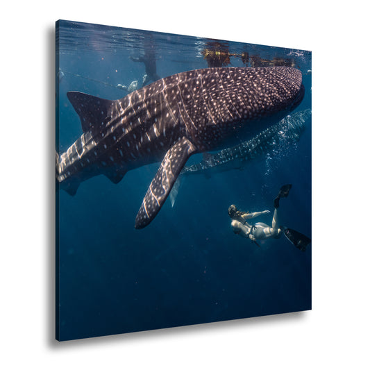 Leinwandbild Schwimmen mit Giganten – Stille Größe unter Wellen.