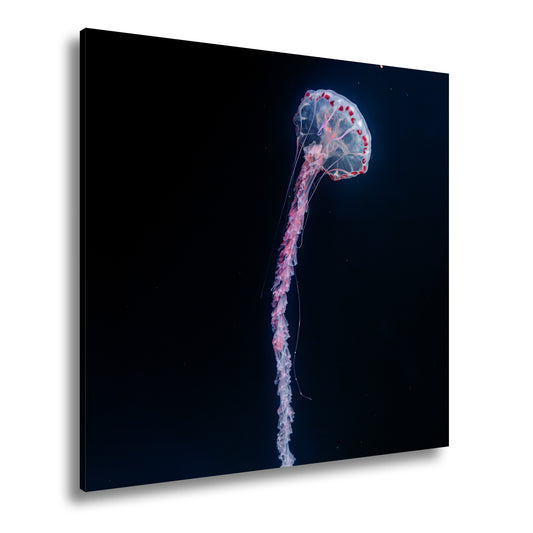 Leinwandbild Schwebende Eleganz – die Qualle im dunklen Ozean.