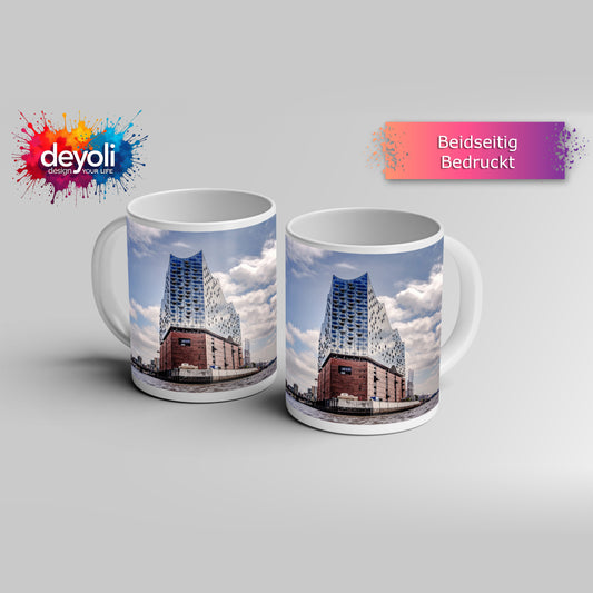 Motivtasse Gläserne Wellen – die Elbphilharmonie am Hafenrand.