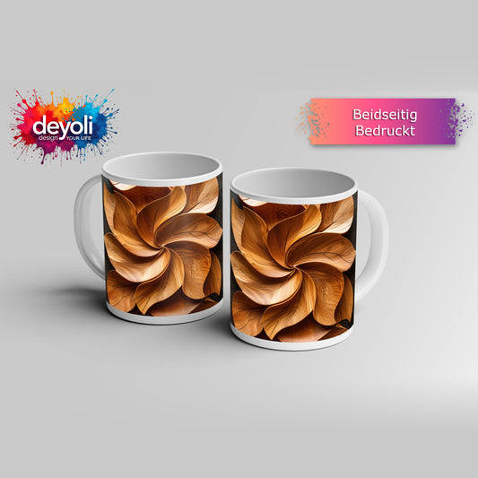Motivtasse Holzblätter wirbeln in kunstvoller, natürlicher Harmonie.