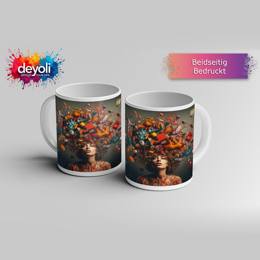 Motivtasse Gedankenchaos als leuchtendes Feuerwerk der Fantasie.